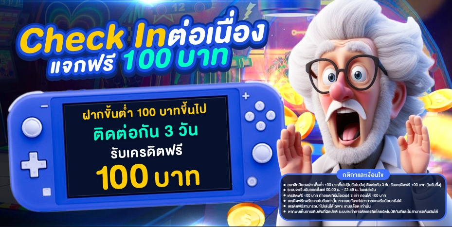 💥สมาชิกมียอดฝากขั้นต่ำ 100 บาทขึ้นไป ❌ต้องไม่รับโปรโมชั่น ❌ ฝากติดต่อกัน 3 วัน รับเครดิตฟรี 100 บาท (ในวันที่4)